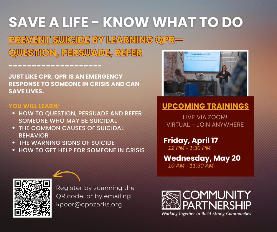 Prevent Suicide by Learning QPR: Question, Persuade, Refer ~ April 17, 2026